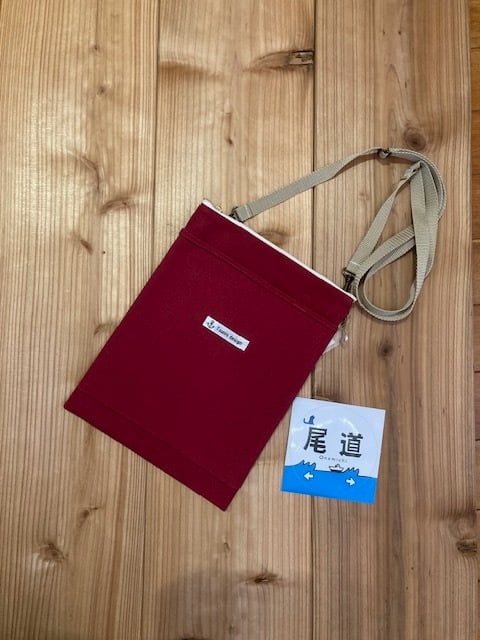 瀬戸内尾道の帆布のサコッシュ〇赤レッドお散歩旅行にも